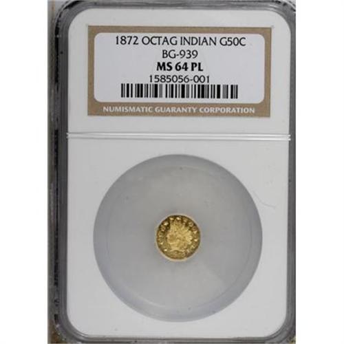 <B>1872 50C BG-939 MS64 Prooflike NGC.</B></I> NGC Census: (0/0). PCGS Population (0/0). (#710797)<BR><BR><b>Shipping:</b> Coins & Currency (<a target="_blank" href="http://www.heritageauctions.com/common/shipping.php">view shipping information</a>)