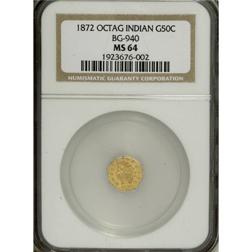 1872 50C Indian Octagonal 50 Cents, BG-940, R.4, MS64