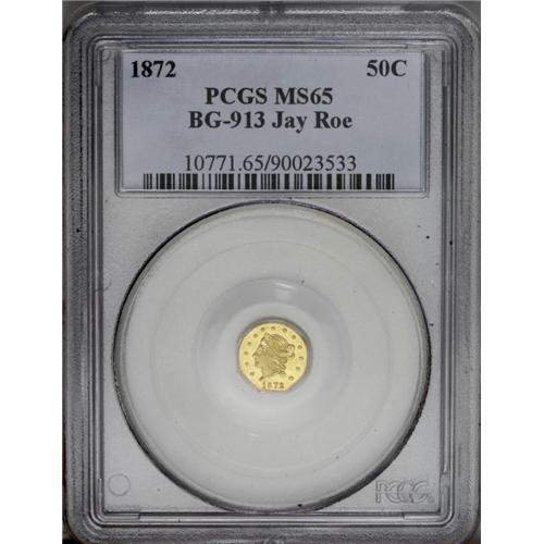 1872 50C Liberty Octagonal 50 Cents, BG-913, R.4, MS65