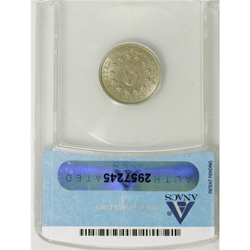 <B>1872 5C MS63 ANACS.</B></I> NGC Census: (27/92). PCGS Population (67/142). Mintage: 6,036,000. Numismedia Wsl. Price: $208. (#3799)<BR><BR><b>Shipping:</b> Coins & Currency (<a target="_blank" href="http://www.heritageauctions.com/common/shipping.php">view shipping information</a>)