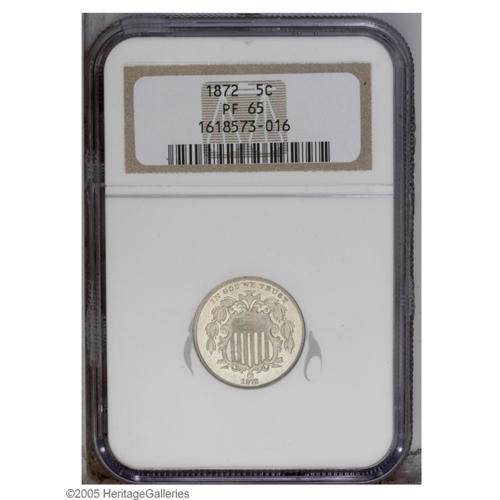 1872 5C PR65 NGC. A prominently mirrored Gem, lightly 1872[5C] PR65 NGC.