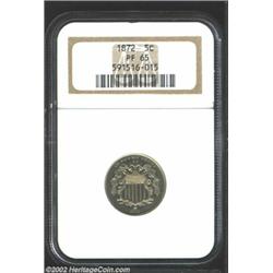 1872 5C PR65 NGC. FS-7. The upper obverse is widely die doubled. Well struck and beautifully preserv
