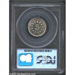 1872 5C PR65 PCGS. FS-7. The leaves and annulet are boldly die doubled. A sharply struck Gem that has mild cameo contrast on the immaculately preserved obverse. The obverse border has a hint of pastel green, rose, and lilac patina. Important notice: We expect to be auctioning lots at the rate of 200-250 per hour. Sometimes eBay Premier live bid software cannot keep up with that pace, so we strongly recommend that you place a realistic proxy bid now as insurance to avoid disappointment. Also please note that all Heritage/CAA lots purchased through eBay Premier carry a 20% Buyer's Premium. Please make sure you read the Terms and Conditions.