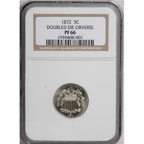1872 5C PR66 NGC. Doubled Die Obverse, Fletcher-06. Th