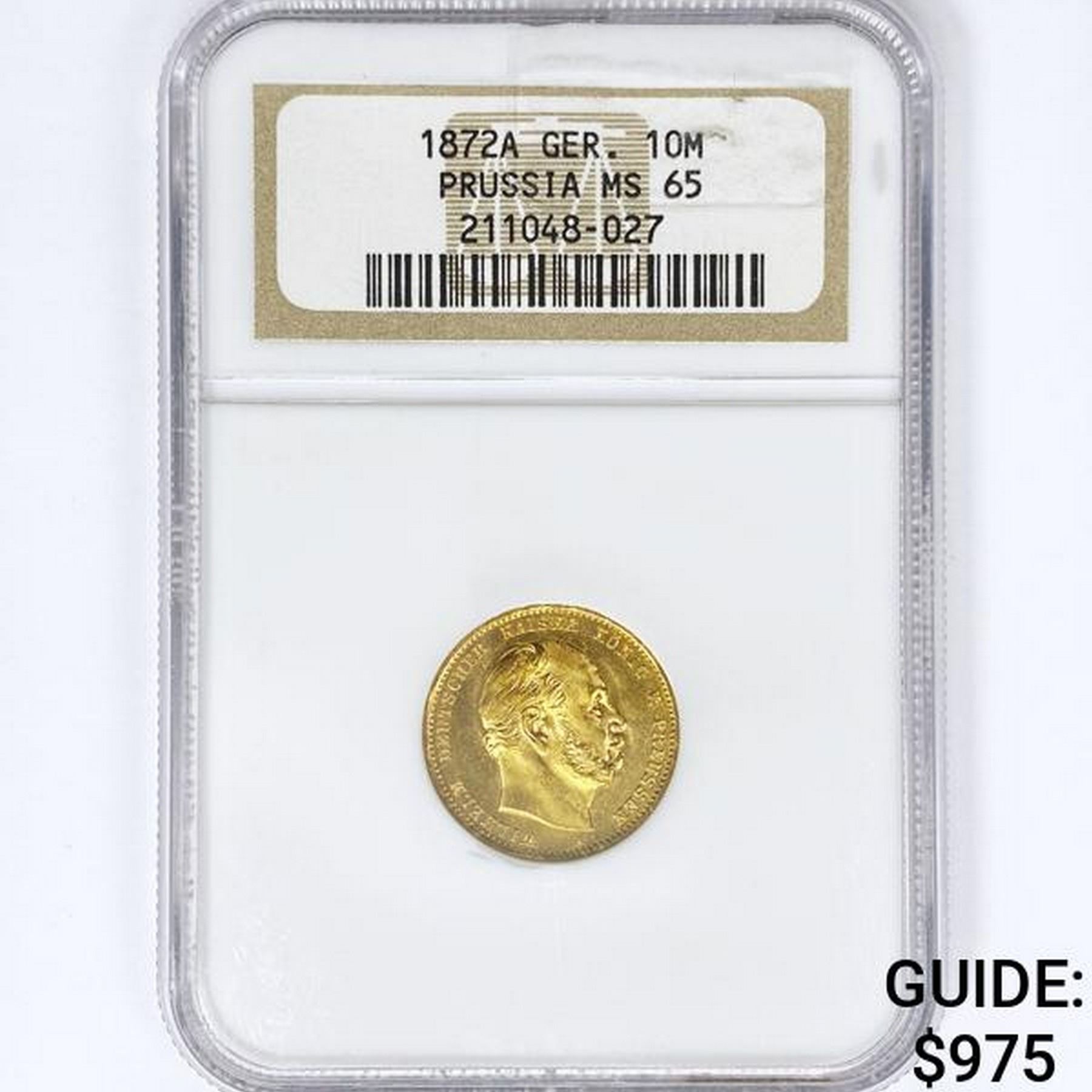 1872-A G.S. Prussia .1152oz Gold 10 Mark NGC MS65