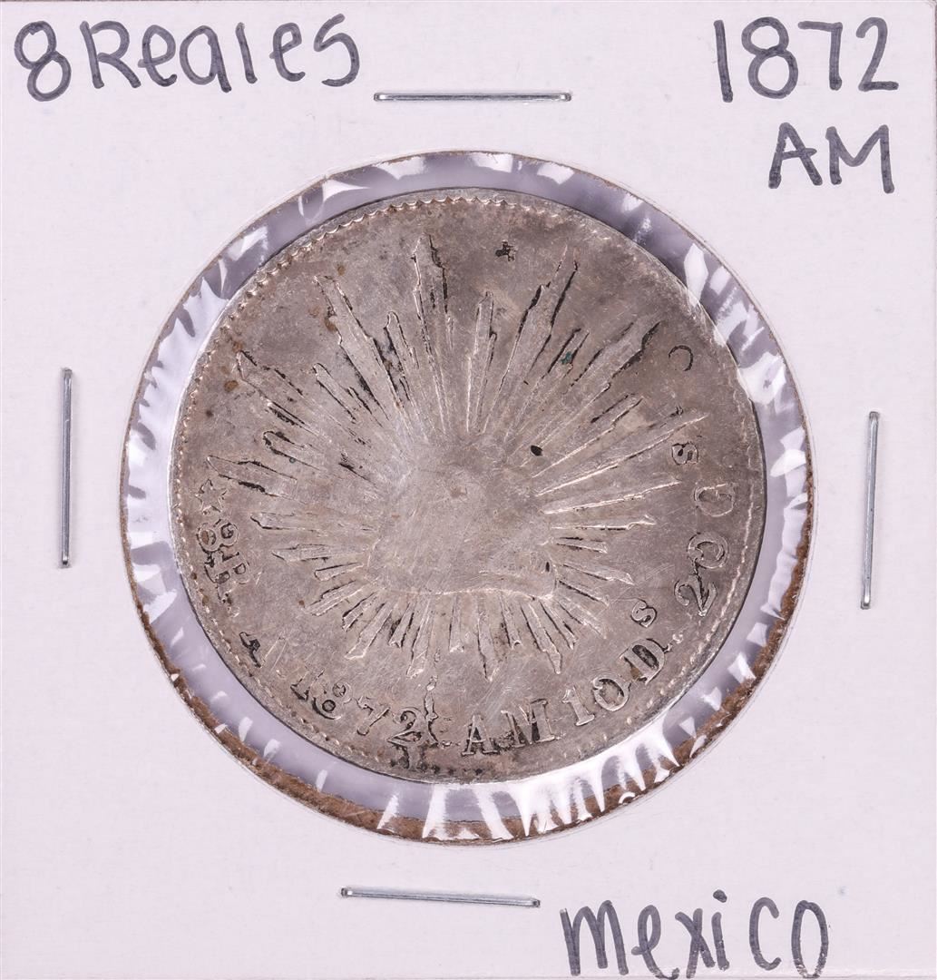 One 1872 AM Mexico 8 Reales Silver Coin.
