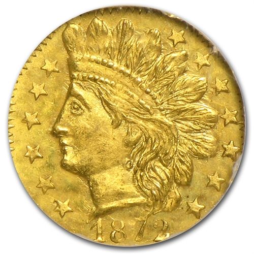 1872 BG-791 Indian Octagonal 25 cent Gold MS-65 NGC **|**|** 1872 BG-791 Indian Octagonal 25 cent Gold MS-65 NGC ; MSRP: $1000