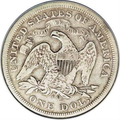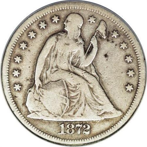 <B>1872-CC $1 --Improperly Cleaned--NCS. Fine Details.</B></I> The 1872-CC Seated dollar has a tiny mintage of 3,150 pieces, and as one would expect in a frontier town, few if any examples were set aside by collectors. This stone-gray representative has a patch of hairlines on the field beneath the cap, but will satisfy many collectors in need of an example. Two and a half letters in LIBERTY are clear.<BR><BR><B>Coin Engraver:</B> Christian Gobrecht<BR><BR><b>Shipping:</b> Coins & Currency (<a target="_blank" href="http://www.heritageauctions.com/common/shipping.php">view shipping information</a>)