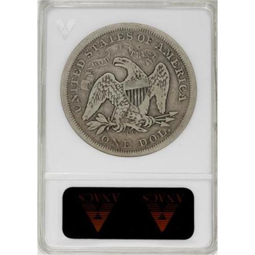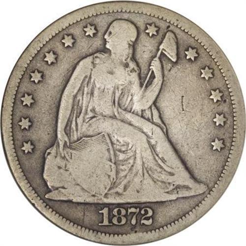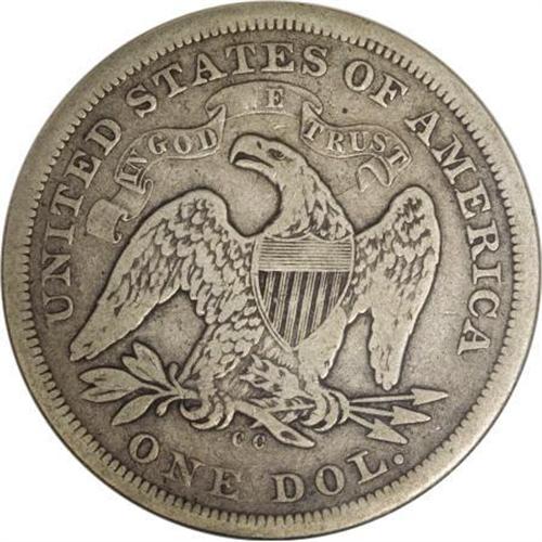 <B>1872-CC $1 VG8 ANACS.</B></I> A collectible cream-gray example of this rare Carson City Seated dollar. The center letters of the shield are gone, but the L and Y are plain, and the T is faint but readable. The eagle displays substantial plumage detail. One of just 3,150 examples coined.<I><BR>From The Beau Clerc Collection.</B></I><BR><BR><B>Coin Engraver:</B> Christian Gobrecht<BR><BR><b>Shipping:</b> Coins & Currency (<a target="_blank" href="http://www.heritageauctions.com/common/shipping.php">view shipping information</a>)