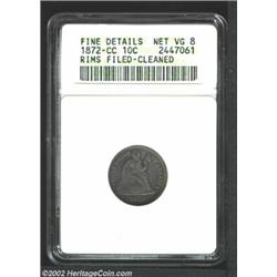 1872-CC 10C--Rims Filed, Cleaned--ANACS. Fine Details, Net VG8. One of the most difficult dates in t