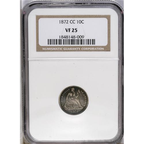 1872-CC 10C VF25 NGC. The 1872-CC dime, with a mintage 1872-CC