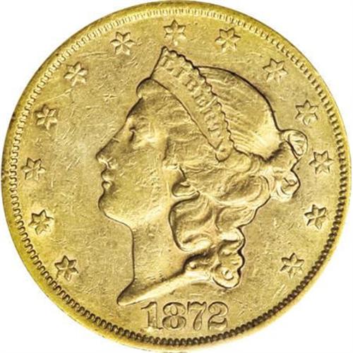 <B>1872-CC $20 AU50 PCGS.</B></I> A very attractive coin with darker gold coloration on the devices that contrasts with lighter gold fields. Much luster remains in the protected areas and the surfaces show less handling marks than usually seen in this grade. 26,900 pieces were minted of this issue, and it is apparent that most entered circulation and were regularly used in commerce. The example offered here thankfully avoided the heavy nicks and marks that plague many of the fellow survivors of this issue, and is lovely. Population: 38 in 50, 80 finer (11/07).<BR><I>From The York/Hallenbeck #2 Current Finest PCGS Registry Set of Liberty Double Eagles.</B></I><BR><BR><B>Coin Engraver:</B> James B. Longacre<BR><BR><b>Shipping:</b> Coins & Currency (<a target="_blank" href="http://www.heritageauctions.com/common/shipping.php">view shipping information</a>)