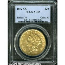 1872-CC $20 AU55 PCGS. Typically abraded, as one