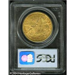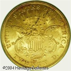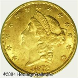 1872-CC $20 AU55 PCGS. While not as rare as other <B>1872-CC $20 AU55 PCGS.</B></I> While not as rare as other CC Twenties in the absolute sense, the '72-CC is one of the most difficult in terms of condition, with relatively few pieces known above XF. This is a lightly worn example of this scarce Carson City issue that displays satiny surfaces, a bold strike, and numerous superficial marks. The original copper-gold color is seen in a somewhat mottled fashion over both sides of this highly desirable example. Population: 15 in 55, 19 finer (11/04). <BR><BR><B>Important notice:</B> Heritage usually auctions material at the rate of 200-250 lots per hour. On some occasions eBay Live bid software or the Internet may not be able to keep up with the pace of the auction. We recommend placing a realistic absentee bid now as insurance to avoid disappointment. Occasionally the auctioneer may eliminate or reject an eBay Live bid, and the auctioneer may also reopen a lot after the close of the eBay live bidding (usually because we missed an audience bid), and may reject your bid even if it shows you as the winning bidder. By bidding via eBay Live, you agree that Heritage may award the lot to another bidder at its sole discretion under the circumstances described above or any other reasonable circumstances. Since eBay bids are not shown to us until we open the lot on the floor, we treat those bids just like floor bids. In most cases the floor responds before the eBay bid is presented to us, due to Internet lag time, so for consistency we have made it a policy that floor bids are always considered first over tie eBay live bids. Also please note that all Heritage lots purchased through eBay Live carry a 20% Buyer's Premium. Please make sure you read the Terms and Conditions before you bid. This lot is being auctioned in conjunction with a live floor auction by Heritage Galleries & Auctioneers. All final auction and invoice information will be supplied by Heritage Galleries & Auctioneers, and all other information should be considered preliminary. Lot:6877