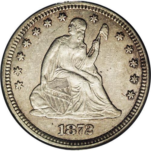 1872-CC 25C AU55 PCGS. Only 22,850 pieces were struck 1872-CC[25C] AU55 PCGS.