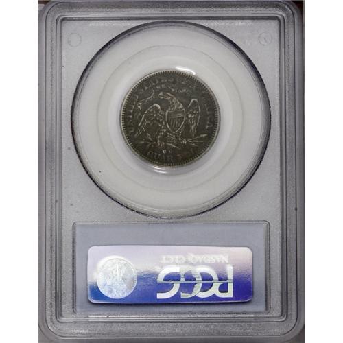<B>1872-CC<25C> XF40 PCGS.</B></I> A deeply toned key Carson City quarter with dove-gray device highpoints. Thorough examination fails to reveal any mentionable marks beneath the russet-brown patination. A small spot is noted southeast of the second S in STATES. The diagonal die line to the lower center of Liberty's shield is diagnostic of this rare issue. The mintage of 22,850 pieces does not appear exceptionally low, but the significance of the issue was unrecognized by westerners, who set few aside. Only two pieces have been certified in Mint State, one each by NGC and PCGS. Population: 3 in 40, 4 finer (1/06).