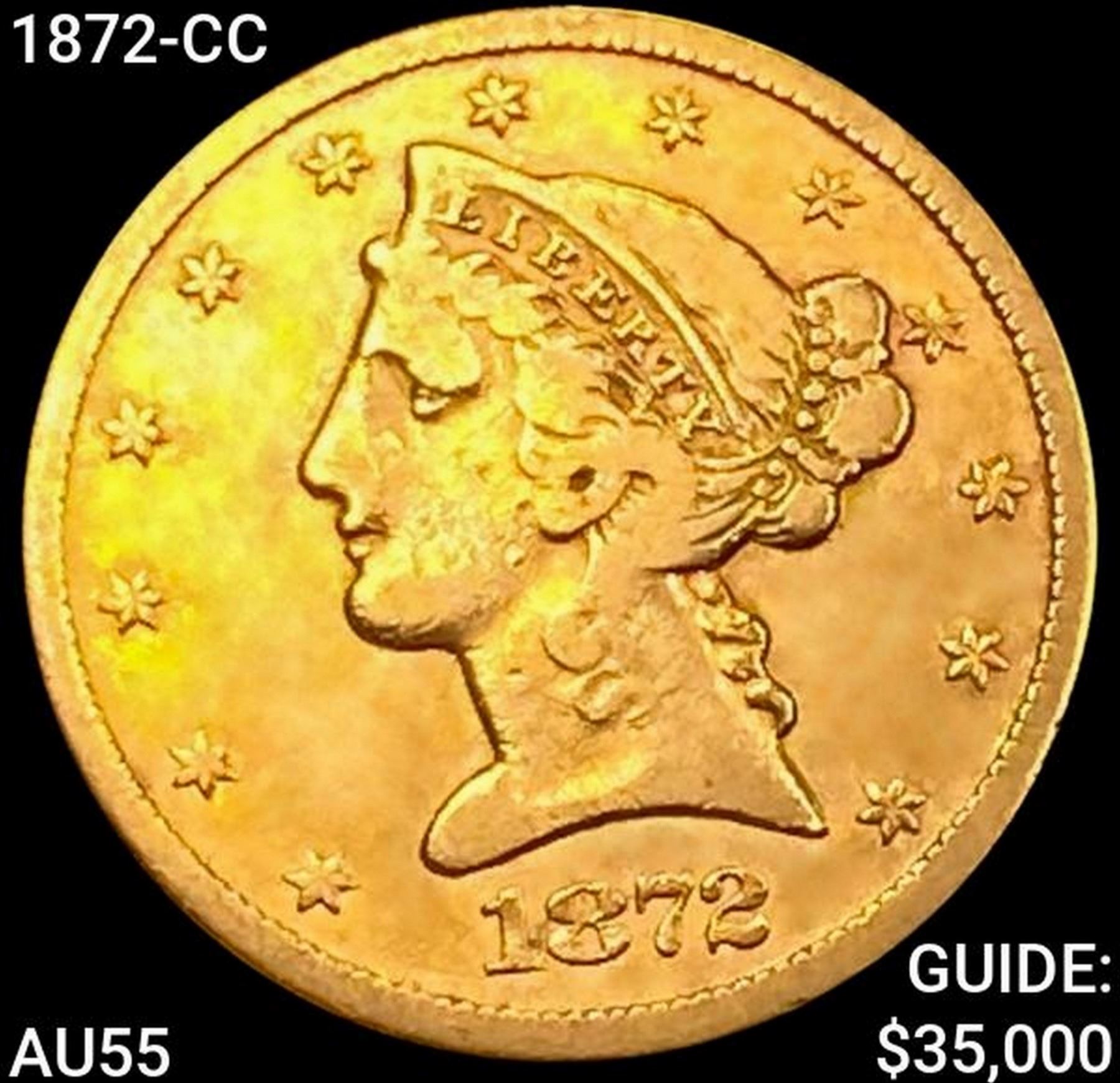 1872-CC $5 Gold Half Eagle HIGH GRADE