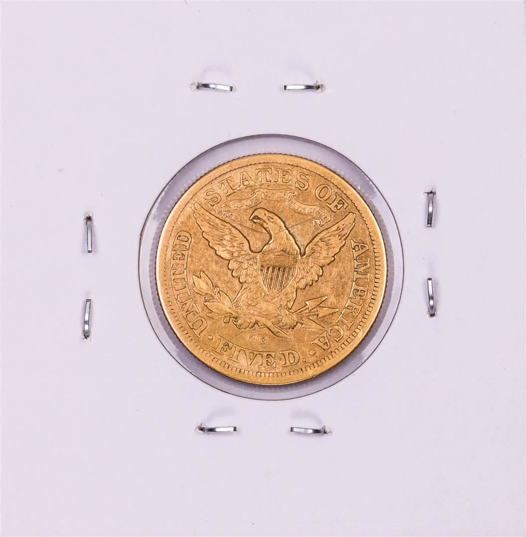 One 1872-CC $5 Liberty Head Half Eagle Gold Coin.