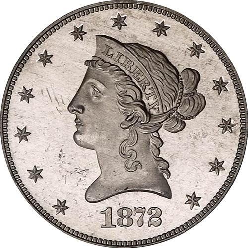 Judd 1249 1872 Eagle, the regular dies struck in Aluminum as a Die Trial with the usual reeded Edge Collar. UNIQUE in this metal, with two more, J1248 in copper.