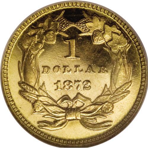 <B>1872 G$1 MS68 Prooflike NGC.</B></I> Ex: Bareford. There is no question that this is the single finest existing business strike of the date, and among the best of the design type. Both sides are fully brilliant with rich yellow and orange-gold color. It is a sharply struck example with deeply mirrored fields and fully lustrous and frosty devices. Offered as a "brilliant proof" in Stack's catalog of the Bareford collection. However, this piece does not have quite the necessary depth of field or sharpness of strike that should exist on proofs.<BR><I>Ex: Will W. Neil (B. Max Mehl, 6/1947), lot 2321; Harold Bareford (Stack's, 12/1978), lot 57.</B></I><BR><BR><b>Shipping:</b> Coins & Currency (<a target="_blank" href="http://www.heritageauctions.com/common/shipping.php">view shipping information</a>)