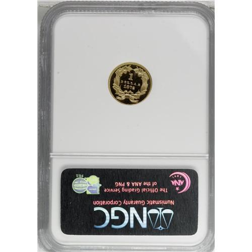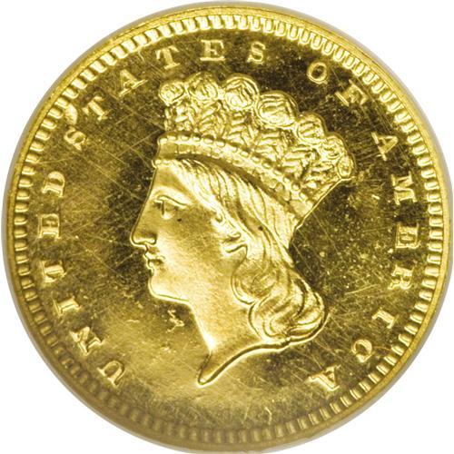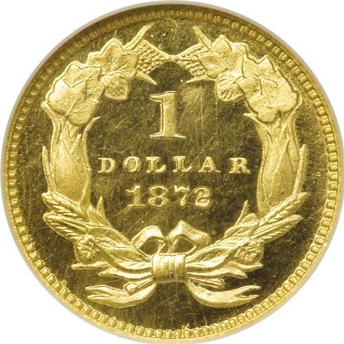 <B>1872 G$1 PR67 Ultra Cameo NGC.</B></I> The 1872 One dollar proof shows a mintage of 30 pieces. Jeff Garrett and Ron Guth, in their <I>Encyclopedia of U.S. Gold Coins, 1795-1933,</B></I> write: "More 1872 coins have been offered for sale that others of the series with mintages of less than 50. The 1872 gold dollar is another date that appears to have a survival rate greater than the original mintage. When studying the rarity of any gold coin, the population date can be very misleading. It is very common for a rare coin to have been resubmitted multiple times in search of a higher grade. this can mean thousands of dollars on some coins, and dealers and collectors can be persistent."<BR><BR> Garrett and Guth suggest that no more than 20 1872 dollar proofs have survived; Walter Breen, writing in his <I>Complete Encyclopedia of U.S. and Colonial Coins,</B></I> estimates 13 to 17 pieces are extant. PCGS and NGC have seen a total of 10 proofs to date, seven Cameo proofs, and seven "Deep/Ultra Cameo" examples.<BR><BR> The brass-gold surfaces of the current PR67 Ultra Cameo display astonishing gold-on-black contrast. The design elements are exquisitely brought up, and impart bold definition to the bonnet, the letters of LIBERTY, the hair, and to the intricacies of the reverse wreath. Some die polish lines are noted in the fields of each side, and a minor planchet defect to the upper right of the first S in STATES may help to identify the coin. A couple of faint linear marks at the upper part of Liberty's head are mentioned for accuracy. Census: 3 in 67 Ultra Cameo, 0 finer (11/06).<BR><BR><b>Shipping:</b> Coin/Currency (<a target="_blank" href="http://www.heritageauctions.com/common/shipping.php">view shipping information</a>)