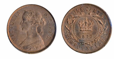 1872-H. ICCS Mint State-64. Red. 80% remaining red luster.
