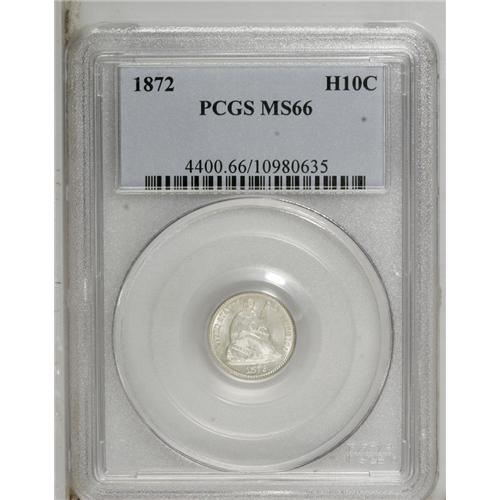 <B>1872 H10C MS66 PCGS.</B></I> Pretty luster is the prime draw of this piece, which has pastel pink and blue patina. This Premium Gem, coined from lightly clashed dies, has hardly any marks on its smooth surfaces. Population: 9 in 66, 0 finer (11/06).<BR><BR><b>Shipping:</b> Coin/Currency (<a target="_blank" href="http://www.heritageauctions.com/common/shipping.php">view shipping information</a>)
