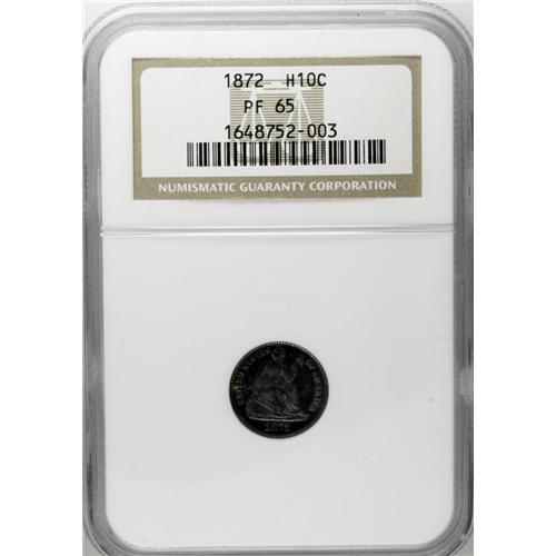 <B>1872 H10C PR65 NGC.</B></I> Electric blue, violet, and olive-green patina saturates the surfaces of this diminutive Gem. Boldly defined and immensely appealing. Census: 25 in 65, 16 finer (11/06).<BR><I>From The Hill Country Collection.</B></I><BR><BR><b>Shipping:</b> Coin/Currency (<a target="_blank" href="http://www.heritageauctions.com/common/shipping.php">view shipping information</a>)