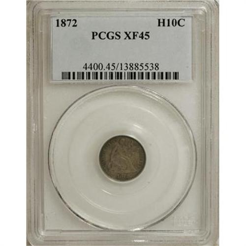 <B>1872 H10C XF45 PCGS.</B></I> PCGS Population (7/295). NGC Census: (1/289). Mintage: 2,947,950. Numismedia Wsl. Price for NGC/PCGS coin in XF45: $39. (#4400)<BR><BR><B>Coin Engraver:</B> Christian Gobrecht<BR><BR><b>Shipping:</b> Coins & Currency (<a target="_blank" href="http://www.heritageauctions.com/common/shipping.php">view shipping information</a>\)