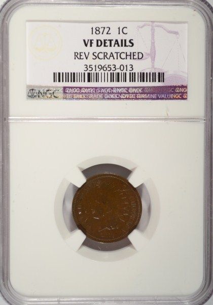 1872 INDIAN CENT NGC VF VERY, VERY MINOR MARK ON REVERSE. MARK HARDLY SEE
