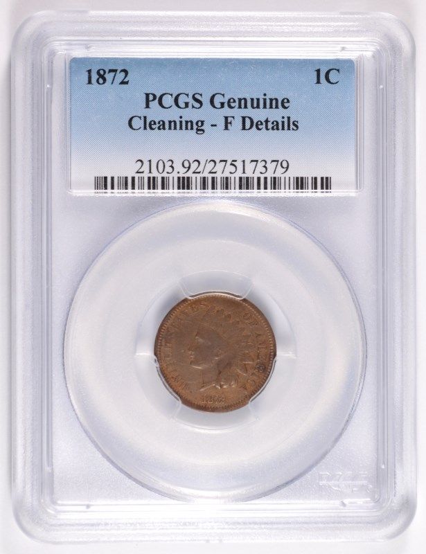 1872 INDIAN HEAD CENT, PCGS-FINE LIGHT CLEANING