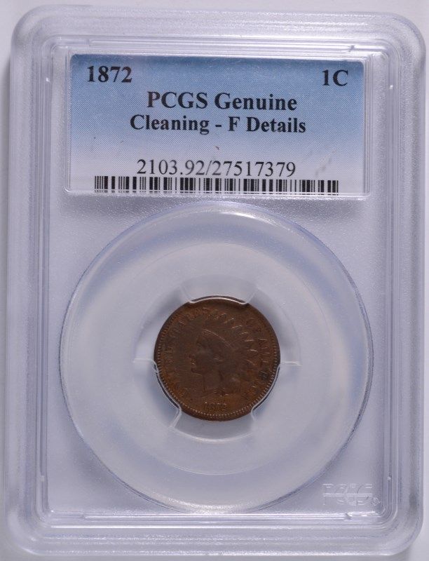 1872 INDIAN HEAD CENT, PCGS-FINE LIGHT CLEANING