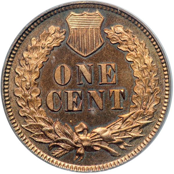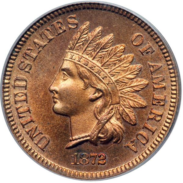 1872. PCGS graded Proof 65 Red PQ. A stunning Gem Proof glittering with mint brilliance of pinkish-red colors. A Premium Quality coin for the grade. Only 950 or so proofs struck. Pop 12; 6 in 66 RD (PCGS # 2305) .