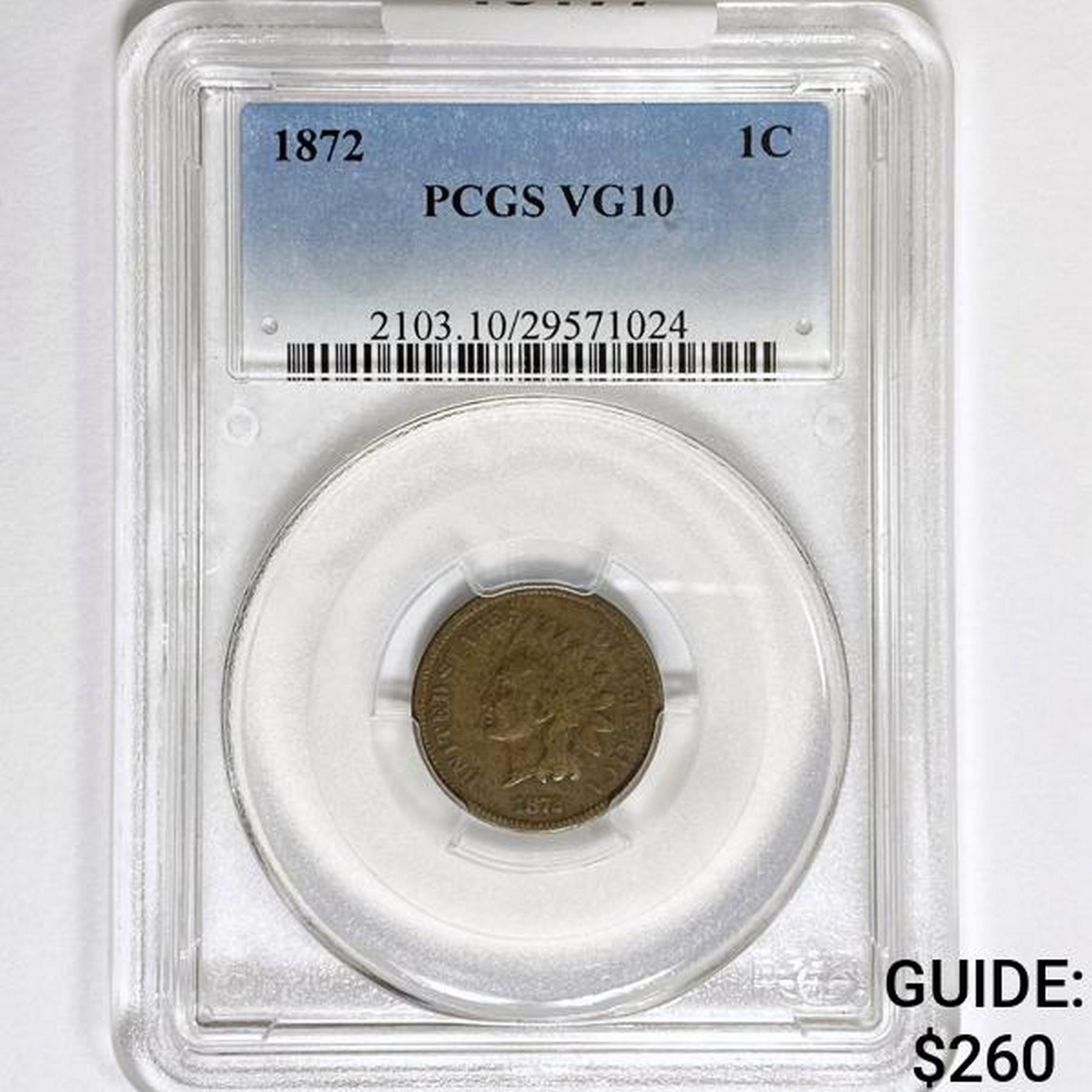 1872 Indian Head Cent PCGS VG10