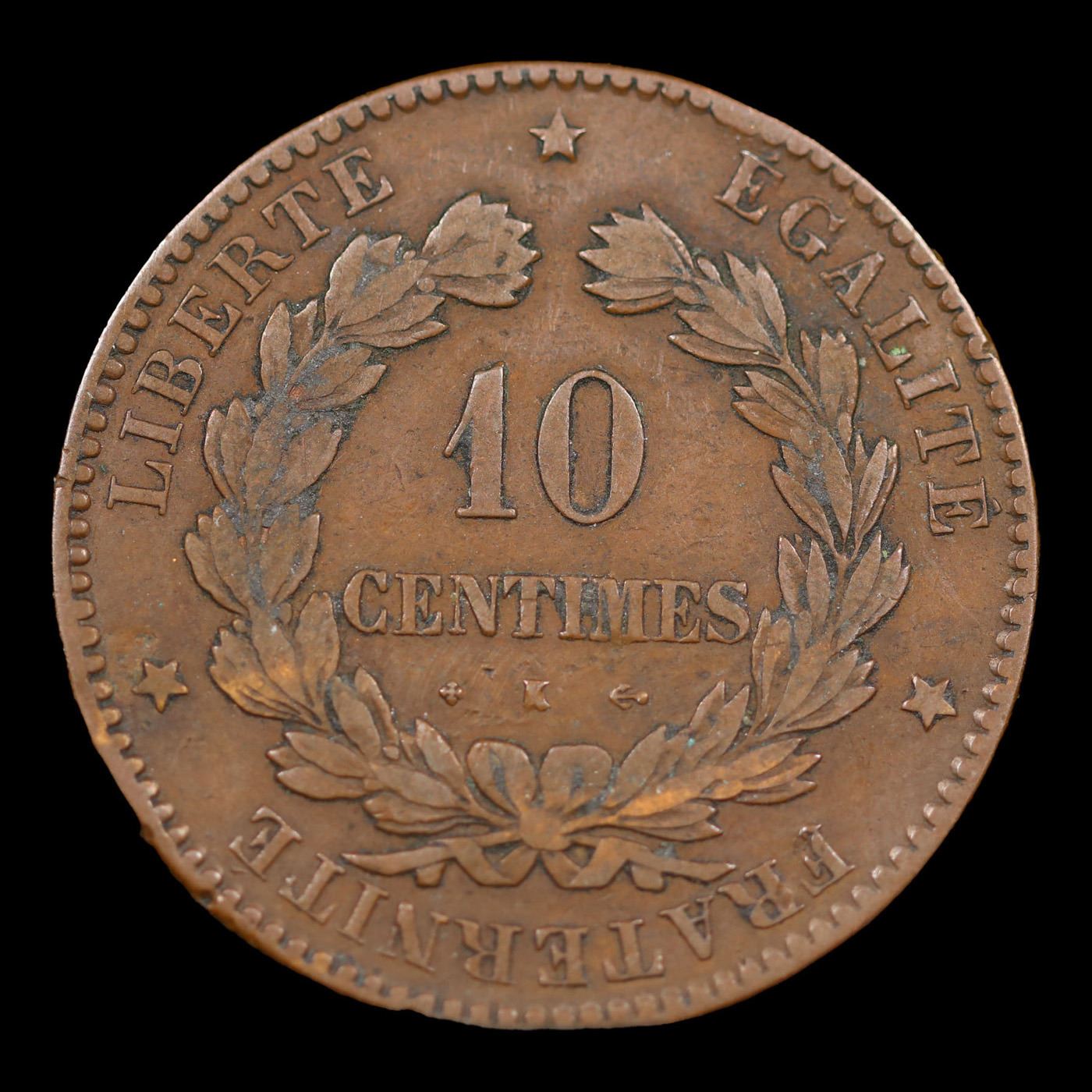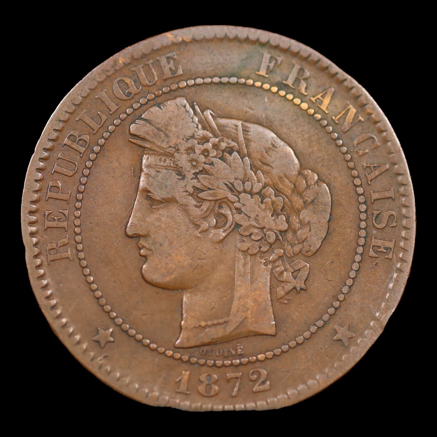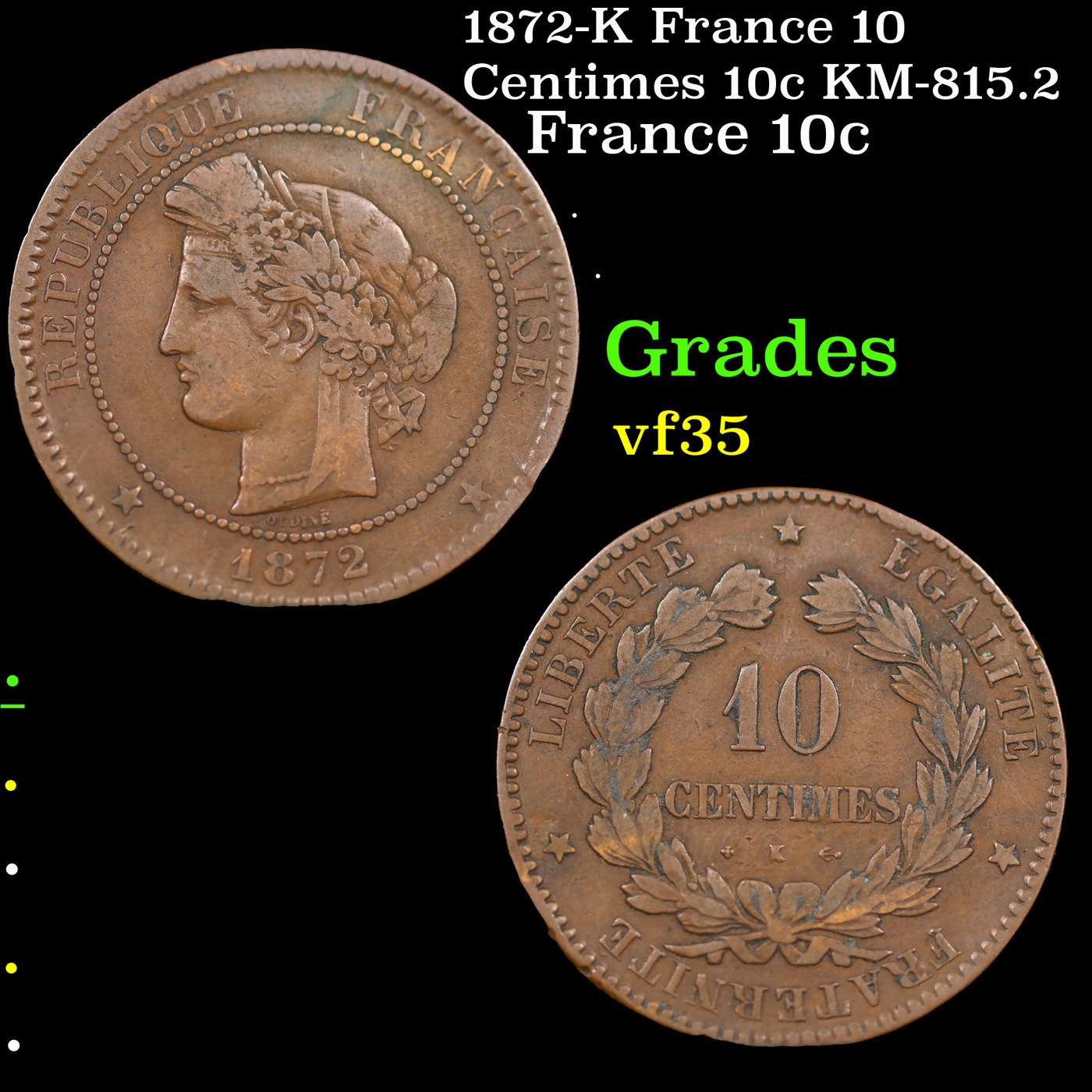 1872-K France 10 Centimes 10c KM-815.2 Grades vf++.