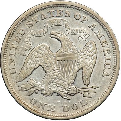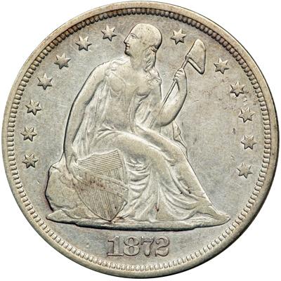 1872 Liberty Seated Dollar. EF-40. Lightly cleaned.