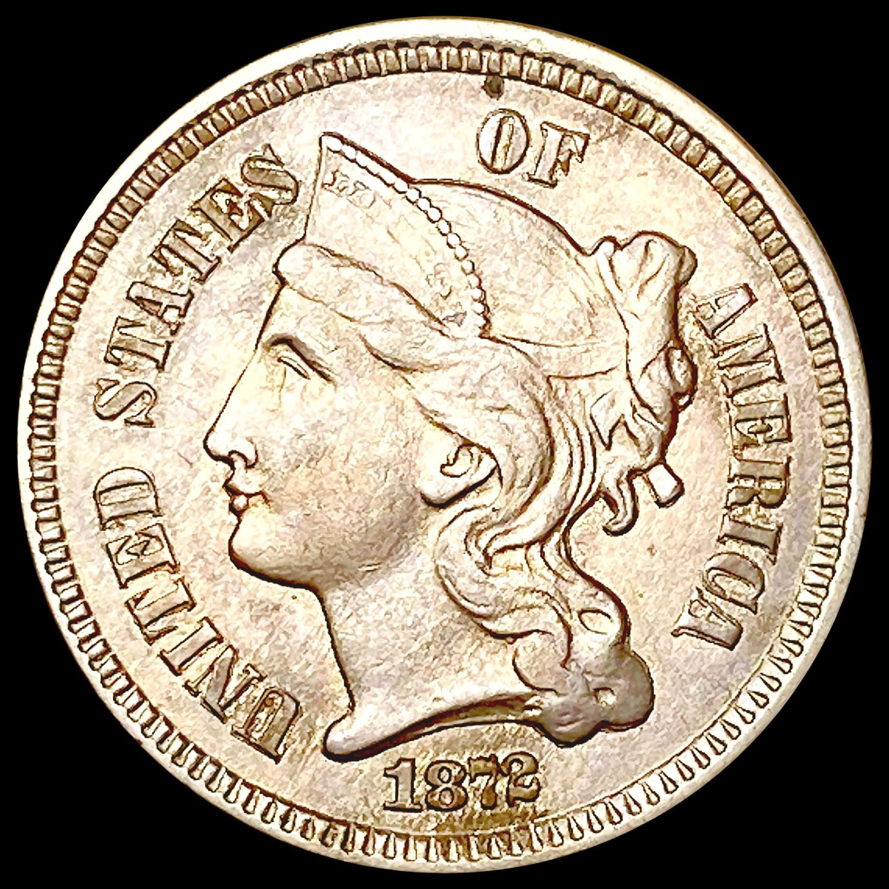 1872 Nickel Three Cent NEARLY UNCIRCULATED