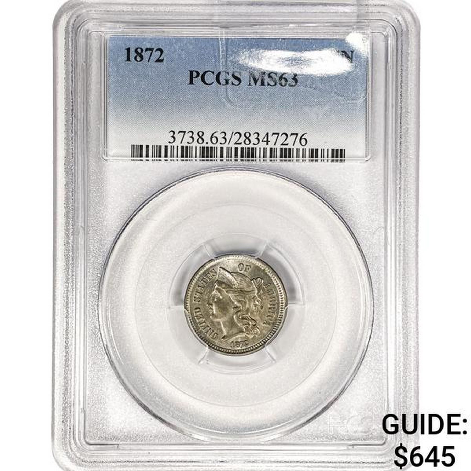 1872 Nickel Three Cent PCGS MS63