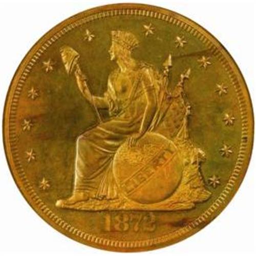 <style type="text/css"> body, td, th { font-family: Arial, Helvetica, sans-serif; font-size: 12px; color: #482424; margin: 0px; padding: 0px; } #header { background-image: url(http://www.bowersandmerena.com/ebay/images/template_v3_01.gif); clear: both; background-color: #590303; border-top-width: 2px; border-top-style: solid; border-top-color: #B38C4F;}#header #header_wrapper { height: 75px; clear: both; width: 800px; margin-right: auto; margin-left: auto; background-image: url(http://www.bowersandmerena.com/ebay/images/template_v3_03.gif); background-repeat: no-repeat; background-position: right; color: #F3EDCC;}#header #header_wrapper #header_logo { float: left; height: 75px; width: 444px; background-image: url(http://www.bowersandmerena.com/ebay/images/template_v3_02.gif); background-repeat: no-repeat; font-size: 10px; text-transform: capitalize; color: #B38C4F;}#header #header_wrapper #header_right { float: left; height: 75px; width: 356px; text-align: right;}#header #header_wrapper #header_right #headerLoginBtn { margin-bottom: 30px;}#header #header_wrapper #header_right input#txtSearch { color: #B49056; border: 1px solid #B49056; width: 175px; padding-top: 3px; padding-right: 3px; padding-bottom: 4px; padding-left: 3px;}#nav { height: 37px; background-image: url(http://www.bowersandmerena.com/ebay/images/template_v3_05.gif); clear: both;}#nav #nav_wrapper { height: 35px; width: 800px; margin-right: auto; margin-left: auto; border-left-width: 1px; border-left-style: solid; border-left-color: #B38C4F;}#nav #nav_wrapper a { padding-right: 15px; padding-left: 15px; border-right-width: 1px; border-right-style: solid; border-right-color: #B38C4F; height: 25px; padding-top: 10px; display: block; float: left; text-decoration: none; font-weight: bold; color: #5D0303;}#nav #nav_wrapper a:hover { color: #B38C4F;}#nav #nav_wrapper #search { float: right; padding-top: 7px;}#nav #nav_wrapper #search #txtSearch { font-family: Arial, Helvetica, sans-serif; font-size: 10px; text-transform: uppercase; color: #D2AE75; border: 1px solid #B38C4F; padding: 3px;}#content_bgd { background-image: url(http://www.bowersandmerena.com/ebay/images/template_v3_09.gif); background-repeat: repeat-y; background-position: center; padding-top: 15px; padding-bottom: 15px; background-color: #FBFBDB;}#content_wrapper { clear: both; height: auto; width: 800px; margin-right: auto; margin-left: auto;}.LotDetailWhite{ line-height:normal; font-size:13px; font-family: arial,helvetica,sans-serif; color: White; font-weight: bold;}.LotDetailInformation{ line-height:normal; font-size: 13px; font-family: arial,helvetica,sans-serif;}.LotDetailMessage{ line-height:normal; font-size: 13px; font-family: arial,helvetica,sans-serif; color: red;}}tr.HeaderAuctionTitle td { color: #000000; font-weight: bold; padding: 2px; background-image: url(http://www.bowersandmerena.com/ebay/images/template_v3_05.gif); background-repeat: repeat-x; border-bottom-width: 1px; border-bottom-style: solid; border-bottom-color: #B38C4F;}table.AuctionSummary a, table.AuctionSummary a:link, table.AuctionSummary a:visited { color: #0000FF; text-decoration: none;}}td.tableHeaderLeft { border-left-width: 1px; border-left-style: solid; border-left-color: #B38C4F;}td.tableHeaderRight { border-right-width: 1px; border-right-style: solid; border-right-color: #B38C4F;}td.tableCellMiddle { border-left-width: 1px; border-left-style: solid; border-left-color: #B38C4F; border-right-width: 1px; border-right-style: solid; border-right-color: #B38C4F; padding: 5px;}tr.footer td { border-top-width: 1px; border-top-style: solid; border-top-color: #B38C4F;}</style></head><body><div id="header"> <div id="header_wrapper"> <div id="header_logo"> </div> <div id="header_right"> </div> </div></div><div id="nav"> <div id="nav_wrapper"> <a href="http://www.bowersandmerena.com">Our eBayLive Auctions</a> <a href="#PaymentInfo">Payment Information</a> <a href="#ShippingInfo">Shipping Information</a> <a href="#About">About Bowers and Merena</a> </div></div><div id="content_bgd"> <div id="content_wrapper"> <table width="100%" border="0" cellpadding="5" cellspacing="0" class="AuctionSummary"> <tbody> <tr class="HeaderAuctionTitle" style="height: 25px;"> <td align="left" class="tableHeaderLeft" > </td> <td align="center" class="tableHeaderRight"> <span style="font-size: large;">Lot #974. 1872 Pattern Trade Dollar. Judd-1216, Pollock-1357. Rarity-7-. Proof-64 BN (NGC).</span> </td> </tr> <tr> <td colspan="3" class="tableCellMiddle"> Liberty is seated left on the obverse, her right hand supporting a liberty pole and her left resting atop a globe inscribed LIBERTY. She is wearing a feathered headdress, and two flags are present behind the portrait. One of the flags displays 13 stars. Thirteen stars also encircle the periphery, and the date 1872 is below. On the reverse, the denomination COMMERCIAL DOLLAR, the specified weight and the fineness are inscribed within an olive wreath. Two crossed cornucopias are present between the words COMMERCIAL and DOLLAR. The legend UNITED STATES OF AMERICA is above, and the motto GOD OUR TRUST is inscribed on a scroll at the base of the wreath. Struck in copper with a reeded edge.This rare specimen belongs in an advanced Trade Dollar set or a specialized collection of pattern coinage. Fully struck and overall smooth, the surfaces are at the threshold of the full Gem grade level. Otherwise orange-brown in tone, splashes of olive-copper tinting are more extensive on the reverse.