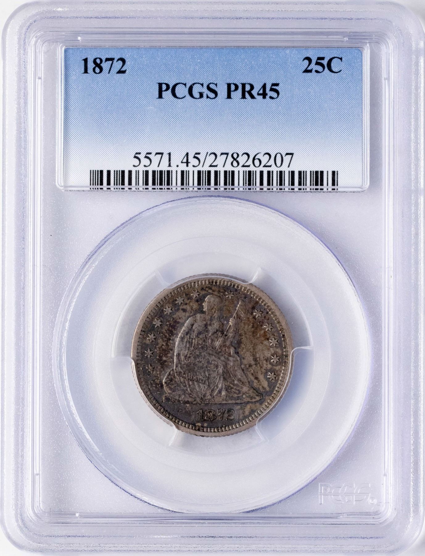 One 1872 Proof Seated Liberty Quarter Coin PCGS PR45.