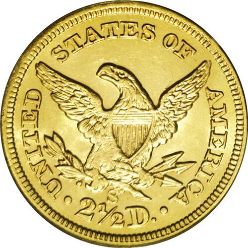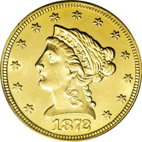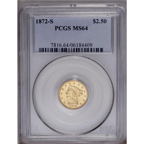 1872-S $2 1/2 MS64 PCGS. Both sides display a hard, me