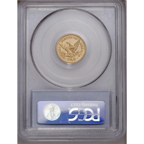 <B>1872-S $2 1/2 MS64 PCGS.</B></I> Both sides display a hard, metallic sheen and are extremely well struck save for localized softness on the eagle left (facing) leg feathers. Just a few glancing blemishes are noticed on Liberty's cheek and brow under magnification. This issue's mintage of 18,000 pieces is a bit lower than other S-mint quarter eagle issues from the period and Mint State survivors in any grade are quite scarce. This Choice example is undoubtedly among the finest 1872-S quarter eagles extant. Population: 2 in 64, 0 finer (1/06).