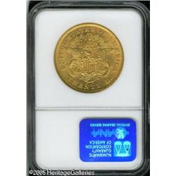 <B>1872-S $20 AU55 NGC.</B></I> Quite lustrous with a few obvious marks and numerous smaller ones on each side. A higher grade than most S-mint Double Eagles of this time period. Lot:9057