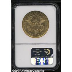 <B>1872-S<$20> MS61 NGC.</B></I> Sharply struck, the pinkish-golden luster is interrupted by numerous small and medium sized abrasions mostly on the obverse. A couple of copper alloy spots are also mentioned on Liberty's neck. Still, a solid Mint State example. Population: 51 in 61, 4 finer (5/04). <BR><BR><B>Important notice:</B> Heritage usually auctions material at the rate of 200-250 lots per hour. On some occasions eBay Live bid software or the Internet may not be able to keep up with the pace of the auction. We recommend placing a realistic absentee bid now as insurance to avoid disappointment. Occasionally the auctioneer may eliminate or reject an eBay Live bid, and the auctioneer may also reopen a lot after the close of the eBay live bidding (usually because we missed an audience bid), and may reject your bid even if it shows you as the winning bidder. By bidding via eBay Live, you agree that Heritage may award the lot to another bidder at its sole discretion under the circumstances described above or any other reasonable circumstances. Since eBay bids are not shown to us until we open the lot on the floor, we treat those bids just like floor bids. In most cases the floor responds before the eBay bid is presented to us, due to Internet lag time, so for consistency we have made it a policy that floor bids are always considered first over tie eBay live bids. Also please note that all Heritage lots purchased through eBay Live carry a 20% Buyer's Premium. Please make sure you read the Terms and Conditions before you bid.