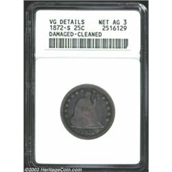 1872-S 25C --Damaged, Cleaned--ANACS. VG Details, Net AG3.