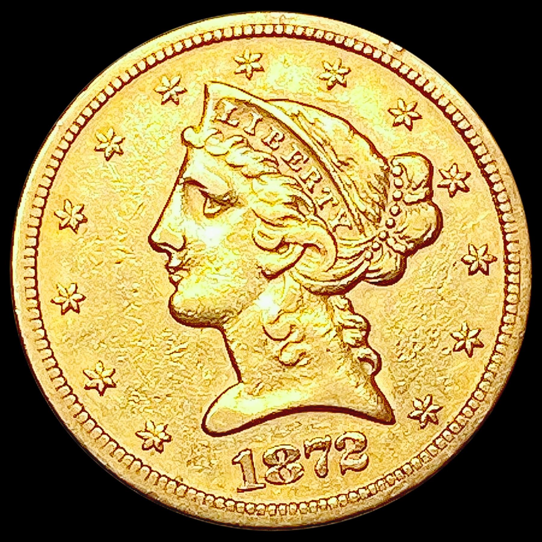 1872-S $5 Gold Half Eagle CLOSELY UNCIRCULATED