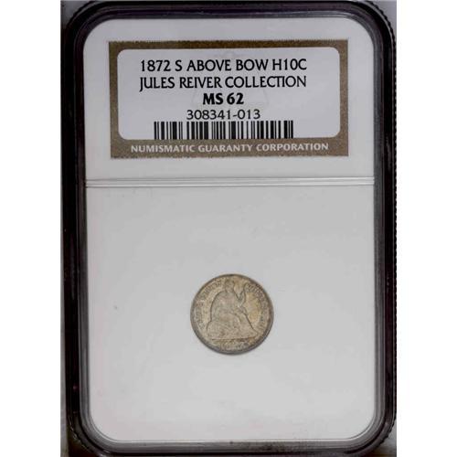 1872-S H10C Mintmark Above Bow MS62 NGC. A boldly stru 1872-S[H10C] Mintmark Above Bow MS62 NGC.