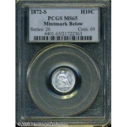 <B>1872-S H10C Mintmark Below Bow MS65 PCGS.</B></I> Blazing white surfaces with radiant luster. Sharply struck, and no significant marks. Lot:6153