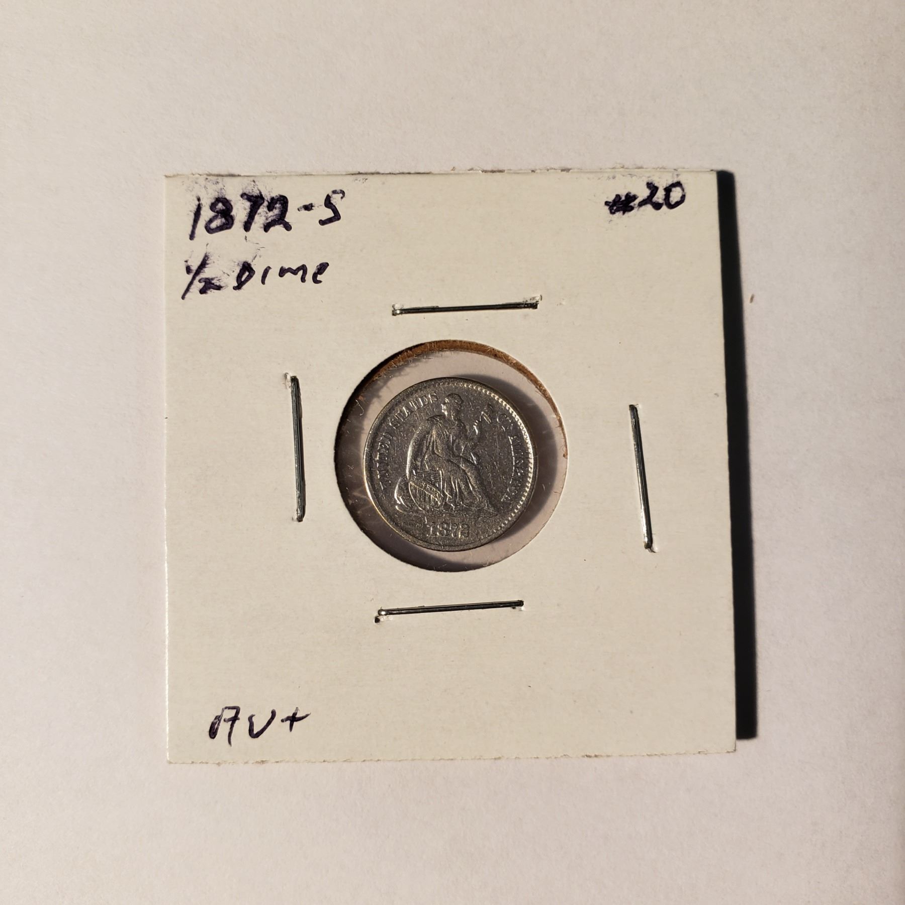 1872-S Half Dime-MM Under WHT H. Grade: AU