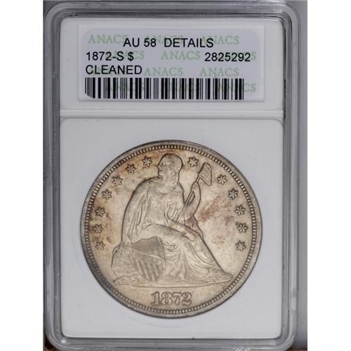 1872-S S$1 --Cleaned--ANACS. AU58 Details. Minor highpo 1872-S[img border='0' src='http://www.herita